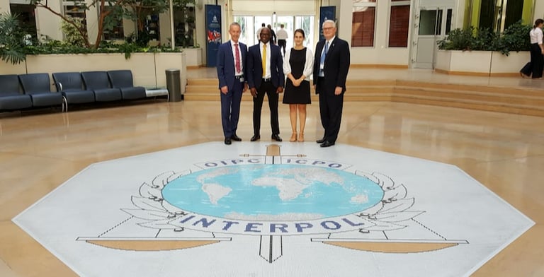 Above: Jay and staff working on law enforcement crisis management communications in cooperation with INTERPOL.