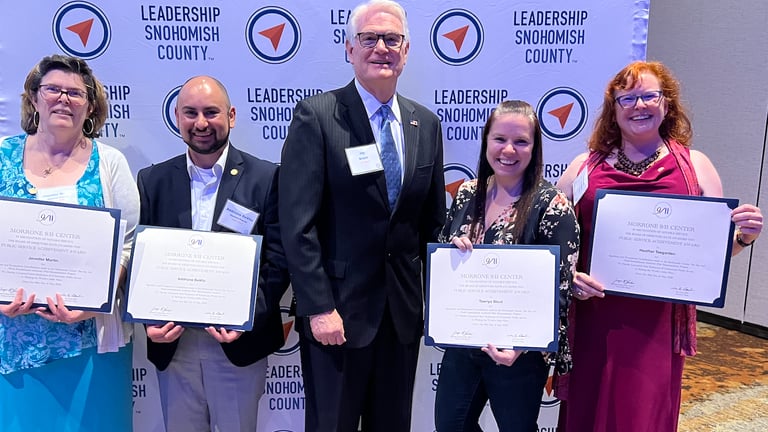 Left: Jay honoring individuals from the Leadership Snohomish County, following a nine month Intern Program for their assistance, who work on the See Say Act Program. Jay is on the Board of Governors of the 9/11 Center.